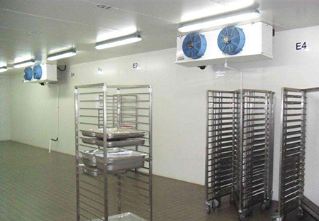 如果是大型冷庫,冷庫庫體外高比較高的話,建議內(nèi)機使用冷風機,采用排管的話安裝非常不方便,存在一定的安全隱患。而冷風機因為拆裝方便在高庫中使用較多。
